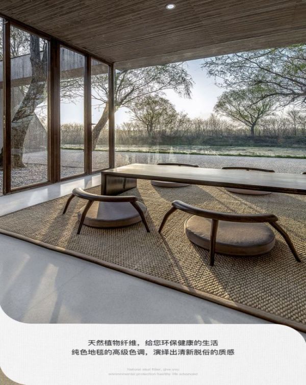剑麻地毯是一种新型地毯,采用天然剑麻纤维编织而成,比较符合现代人对清新自然的追求。剑麻地毯一般有斜纹,鱼骨纹,帆布平纹,多米诺纹等多种花色。剑麻地毯绿色环保,价格较羊毛、真丝地毯实惠,而且具有抗压、耐磨、耐酸碱、吴静电等优点