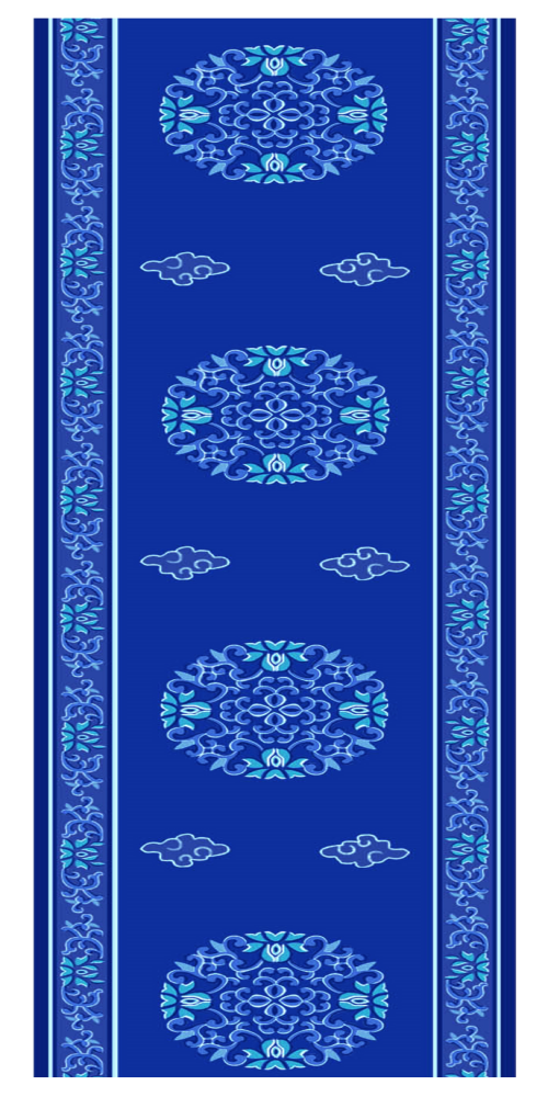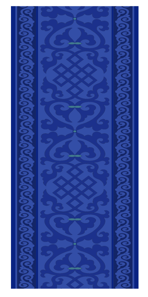 蒙古包地毯 顾名思义是用于蒙古地区的蒙古包内的地毯,主要用途是保温,舒适和装饰作用。颜色以晴空的深蓝色,和土黄色以及经典的中国红为主,图案以祥云、卷草哈回型纹为主,具有鲜明的地域特色和民族风风格。材质以羊毛为主,因为羊毛的保暖性优于其他所有材质。
